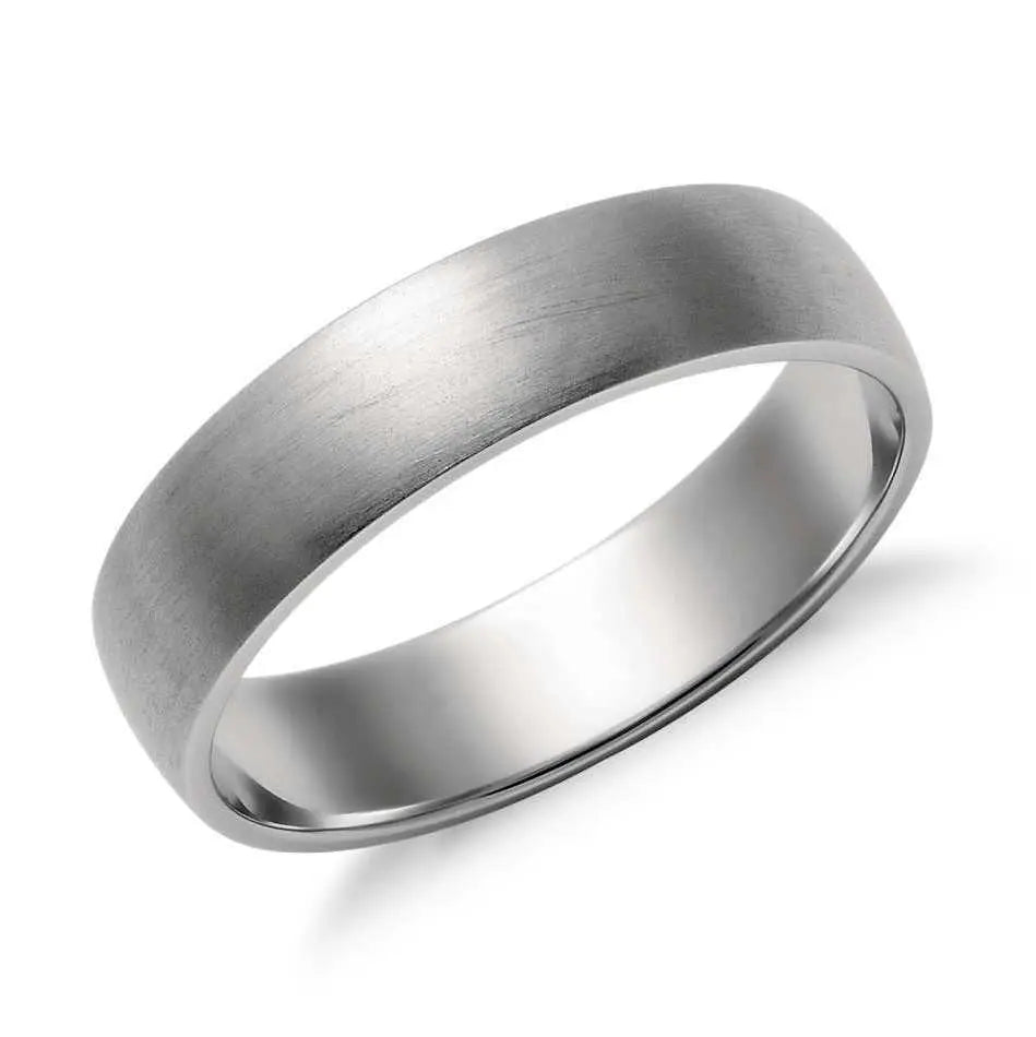 Broad Platinum Band of 5mm plain paltinum with matte finish, ideal for men with simple style.