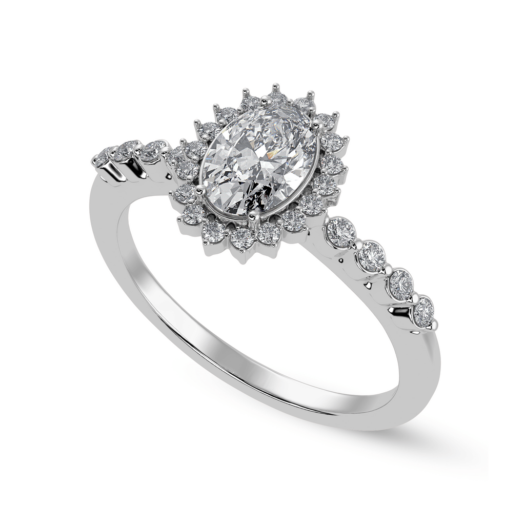 2. Platinum Halo Diamond Ring for Women: A stunning platinum engagement ring for women, this design features a central diamond encircled by a halo of smaller diamonds. The platinum setting enhances the brilliance of the stones, creating a dazzling sparkle from every angle.