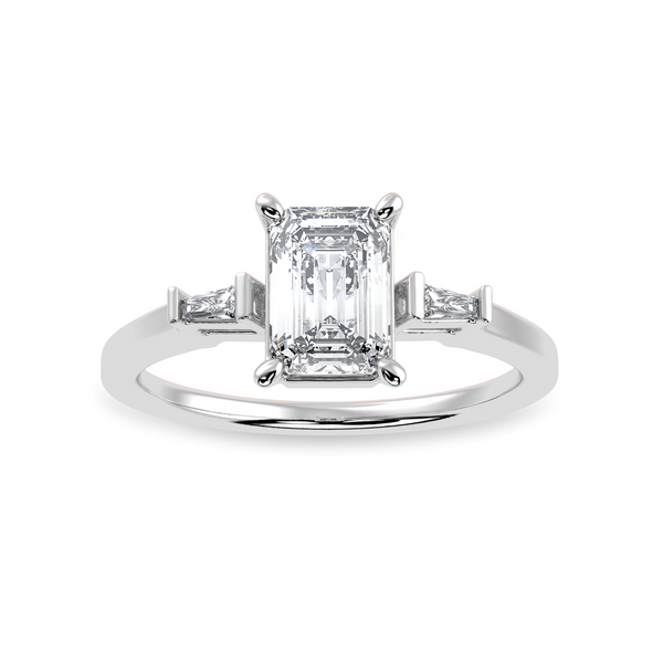 Platinum Emerald Cut Diamond Solitaire with Baguette Diamond Accents Ring.