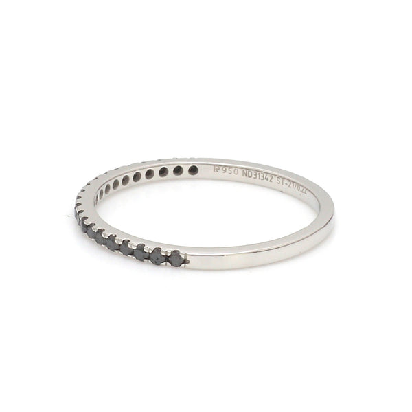 Thin 1.5mm wide band of platinum set with small Black diamonds.