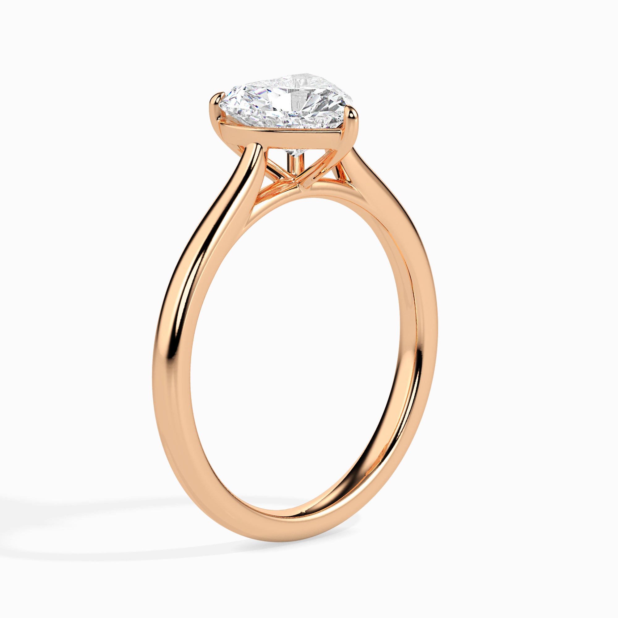 18k Rose Gold Heart Cut Solitaire Diamond Ring.