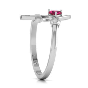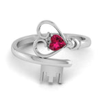 Designer platinum heart ring with heart ruby.