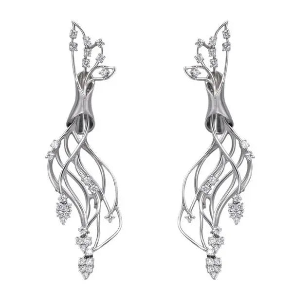 These earrings represents the exponential growth of love, where three curvilinear lines of platinum representing love flow into an enclosure of platinum & come out .