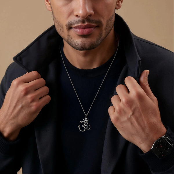 Beautiful pendant crafted as Om in plain platinum.